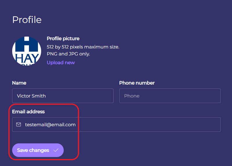Step 4. Update the Email address field and click Save changes