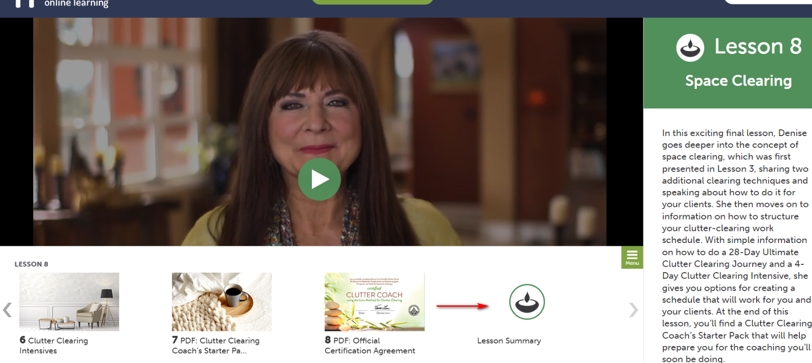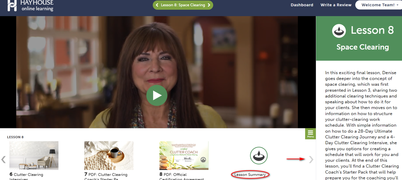 - Click on the arrow going right until you get to the lesson summary.