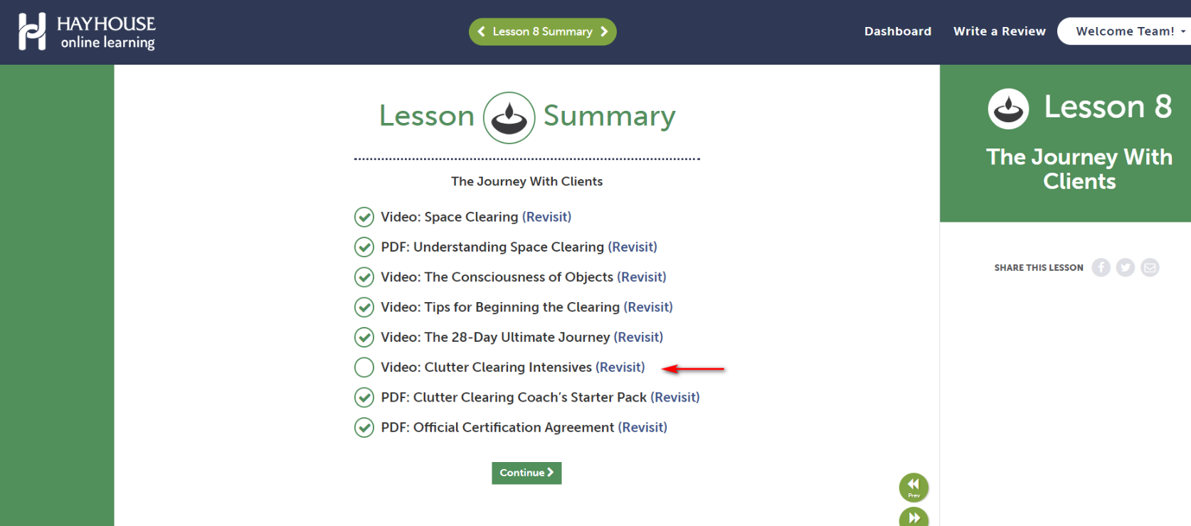 - Click on ''Revisit'' next to the video that needs completion.